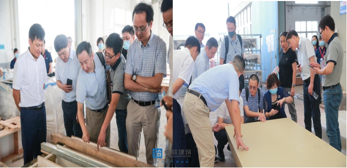 上海土木工程學(xué)會(huì)副理事長(zhǎng)兼秘書長(zhǎng)葉國(guó)強(qiáng),上海建科副總工專委會(huì)主任樊鈞,材料所副所長(zhǎng)韓建軍等領(lǐng)導(dǎo)及專家在我司董事長(zhǎng)劉輝、總經(jīng)理汪靜及合作伙伴Ulcont優(yōu)抗特?UHPC副總裁柯雄的陪同下,參觀了UHPC構(gòu)件生產(chǎn)工廠,并觀摩了UHPC異形大板的成型工藝和過程,對(duì)我司現(xiàn)階段UHPC生產(chǎn)工作予以高度評(píng)價(jià),并給出指導(dǎo)性建議與意見。