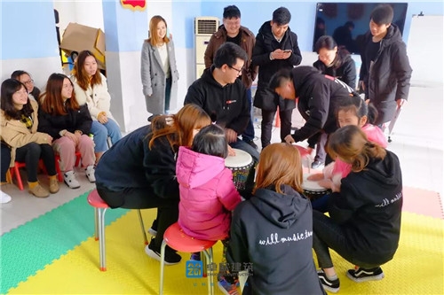 2. 孩子們不善溝通,但是當與這溫馨和諧的氛圍相融合的時候,他們露出了燦爛的笑容。我們伴隨著美妙的音樂一起鼓掌、一起歡笑。