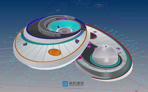 上海天文館建筑結構復雜,而且在形態(tài)上還集大懸挑、大跨度、大開洞、不規(guī)則曲面等于一體,屬于在形態(tài)、材料和體系上均特別不規(guī)則的結構。同時,根據(jù)建筑設計理念的要求,結構各個部位均有其特殊之處,如倒轉穹頂、懸浮球體、圓洞天窗等,以展現(xiàn)建筑結構與天文常識之間的完美統(tǒng)一。這些大大增加了產(chǎn)品制作及安裝難度。產(chǎn)品加工方式以個性化定制為特點,采用雙曲造型實現(xiàn)自然流暢的曲面視覺效果;為減少拼接,將單塊產(chǎn)品尺寸進行放大,同時為保證產(chǎn)品精度,卓歐對每一件產(chǎn)品都進行嚴格把關,使產(chǎn)品接縫與轉折處實現(xiàn)自然過渡,讓建筑以優(yōu)美的自然形態(tài)呈現(xiàn)。