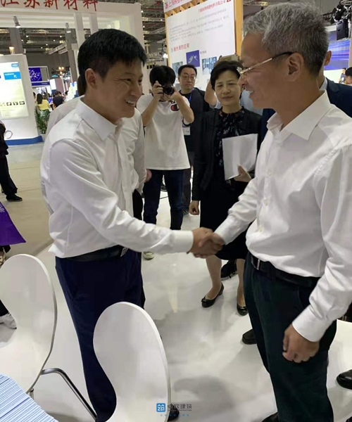 余區(qū)長(zhǎng)視察參觀卓歐展臺(tái),與我司董事長(zhǎng)劉輝先生就新材料展品進(jìn)行了交流。余區(qū)長(zhǎng)對(duì)企業(yè)的發(fā)展表示鼓勵(lì),并指出企業(yè)要加大對(duì)科研的投入,科技發(fā)展是硬道理。