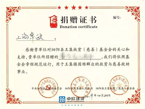 慈善是中華民族的傳統(tǒng)美德,是社會文明進(jìn)步的重要標(biāo)志,是社會保障體系的重要補充,發(fā)展慈善事業(yè)對于保障和改善民生、促進(jìn)社會和諧、推動社會文明具有重要意義。未來,卓歐將繼續(xù)踐行企業(yè)責(zé)任,服務(wù)社會、回報社會,為社會創(chuàng)造價值、傳遞希望!